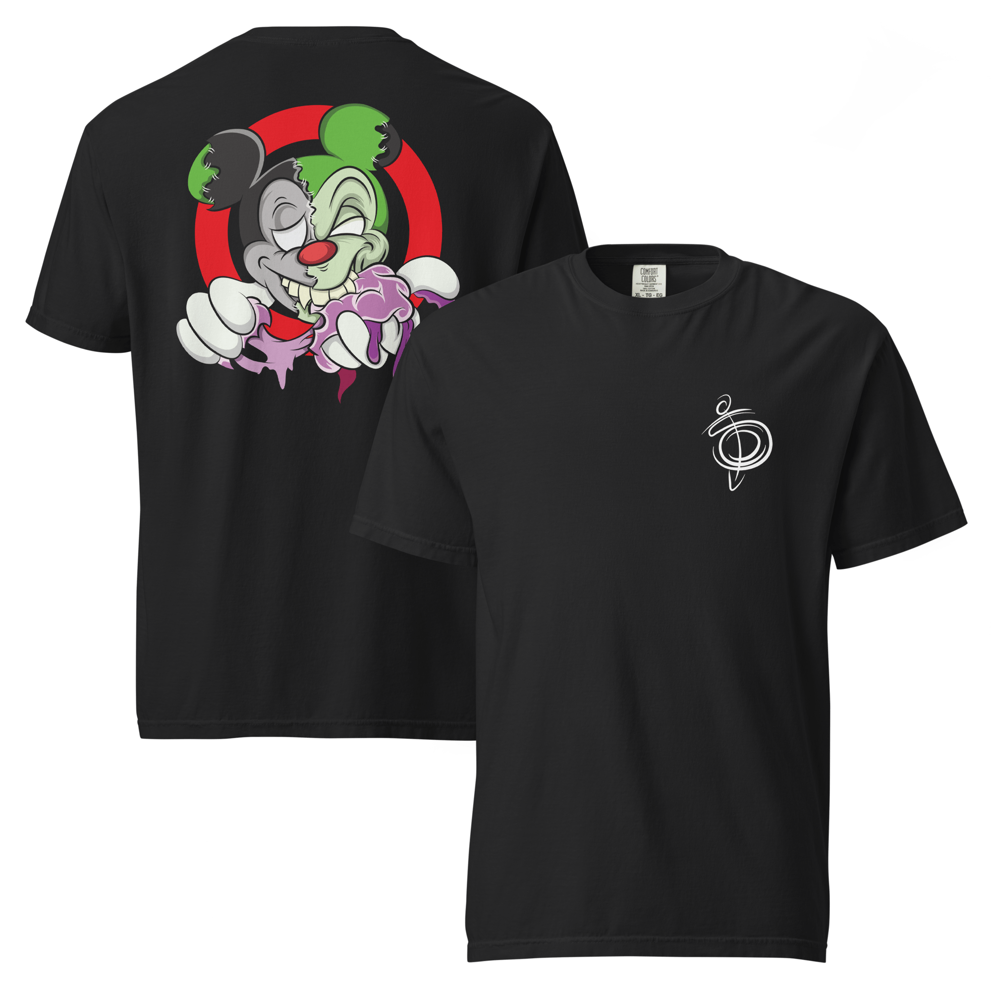 A twisted spin on childhood nostalgia. This street art–inspired design flips the playful world of the clubhouse into a raw, graffiti-fueled nightmare. With bold lines, splattered textures, and a zombified edge, it showcases brain-hungry characters reimagined through an underground lens. Darkly fun, rebellious, and unapologetically bold — this tee is for those who like their art with bite.