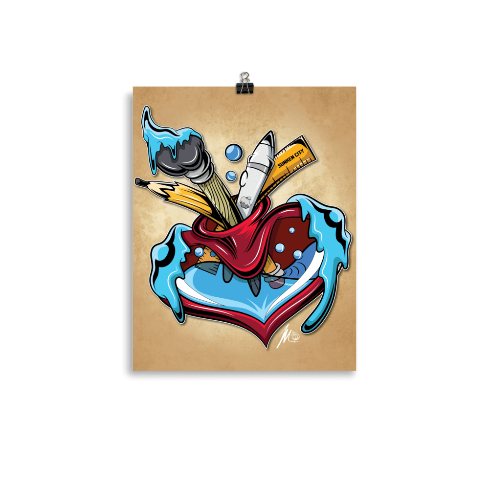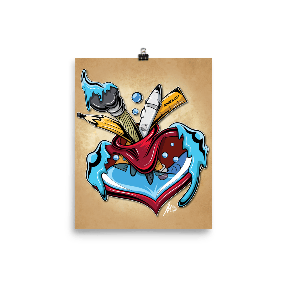 Spray cans take the place of rays, tattoo needles pierce like divine light, and brushes rise like holy flames, celebrating the grind, struggle, and beauty of making art. Sacred Art is both a satire and a tribute poking fun at tradition while honoring the pulse that connects all creators.