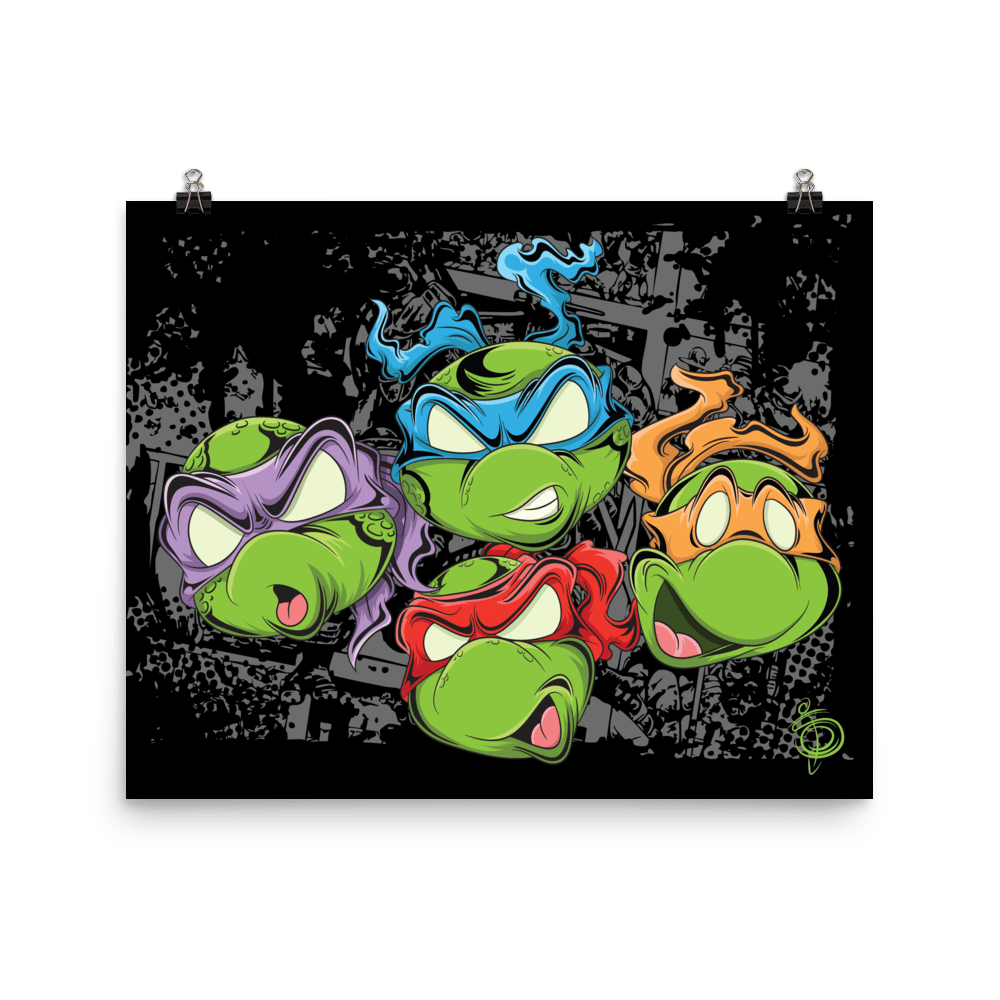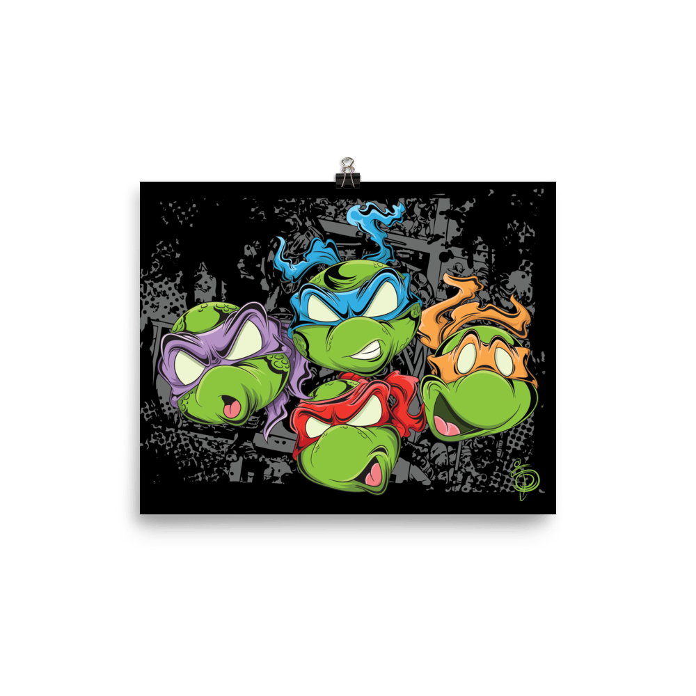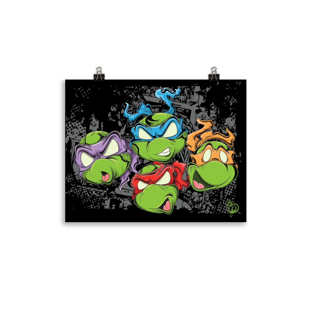 This design takes the Teenage Mutant Ninja Turtles out of the comic panels and into the world of street art and new school tattoos. With bold lines, and exaggerated energy, the brothers are brought to life as a crew of rebellious guardians straight from the sewers to the spray-can walls.